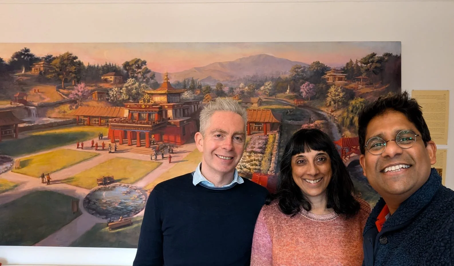 Andrew admired the beauty of Kagyu Ling’s building and grounds and was impressed with Rinpoche and Lama Jampa’s vision of the Institute, captured in Jacob Gourley’s painting. He shared the steps taken by the team in Birmingham and the work he does when supporting organisations in the Department for Education and the Department of Health and Social Care. This involves detailed work on spaces, according to the function, numbers of people, and quality of finish.